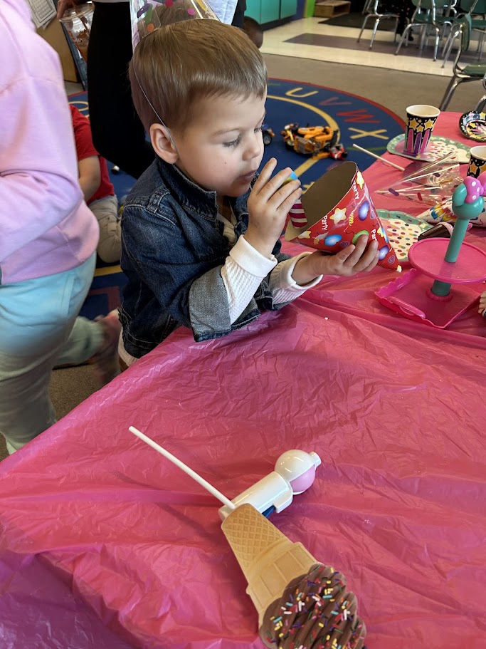 For those new to this beloved tradition, our ice skating experience involves children gliding across a mat full of shaving cream—a sensory activity that has become one of the absolute highlights of the year for our students. The joy and wonder on their faces as they "skate" is truly something special. In fact, just last year, one of our prior students, who is in high school, told Ms. Lauren how he still remembered ice skating from his preschool years and what an amazing experience it had been for him. These are the moments that stick with our young learners!
