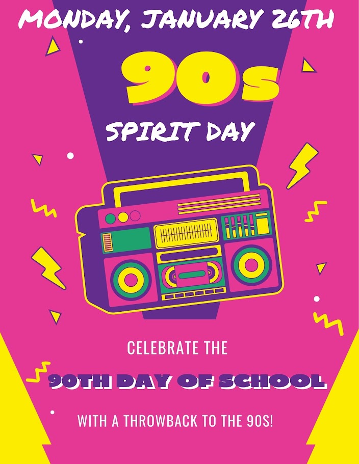 "Woah-oh, we're halfway there!" Monday, January 26th, will be our 90th day of school! 90 more days to go! We'll be celebrating with a throw back to the 1990s with a 90s Spirit Day. Students and staff are encouraged to wear 90s themed attire. ELC and Kindergarten started later so it's not technically their 90th day but we'd love their participation, too!