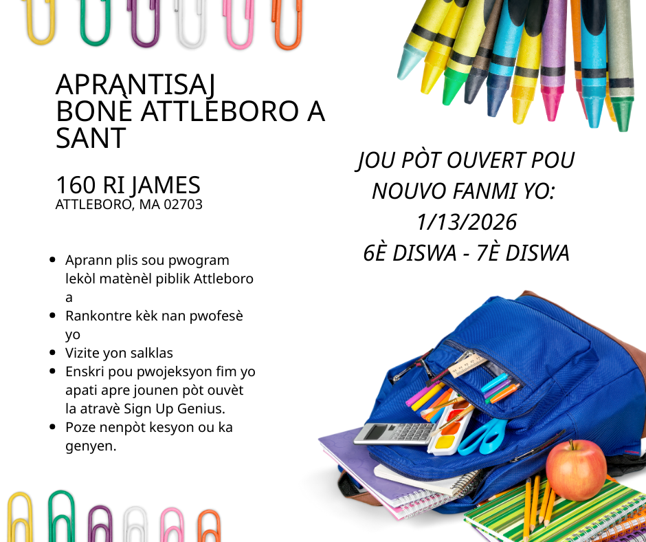 Did you know that our Community Flyers page is updated each week? This page includes events and opportunities in the Attleboro area for both students and families.