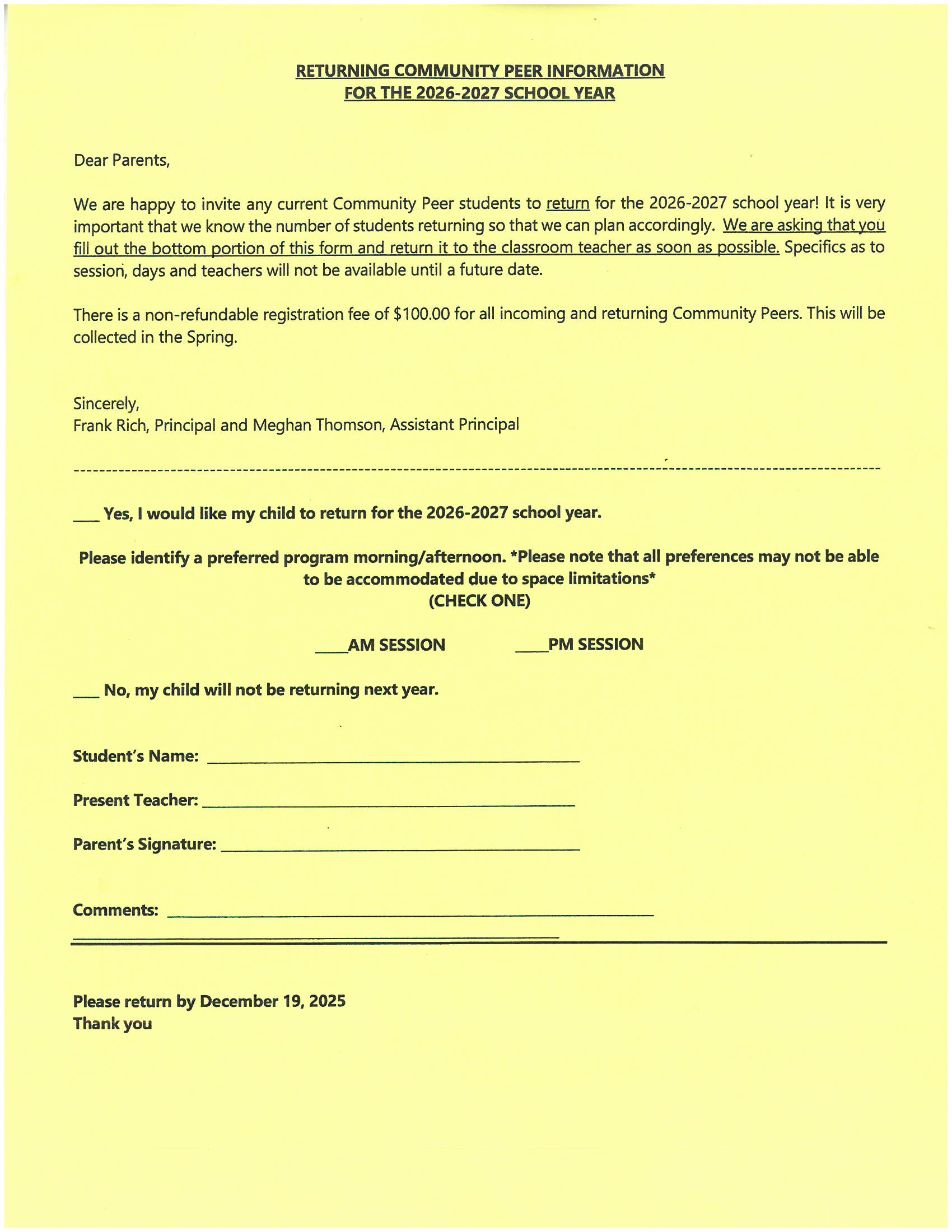 Please complete and return the form by Friday, December 19, 2025.