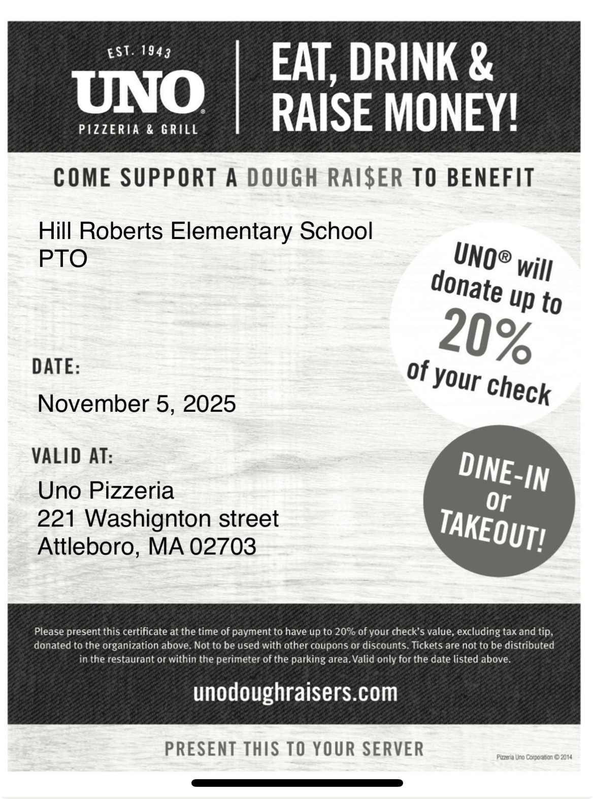 For questions about volunteering, fundraisers, or event questions, email hillrobertspto@gmail.com or visit https://www.facebook.com/share/1GGrujkdtj/?mibextid=wwXIfr |