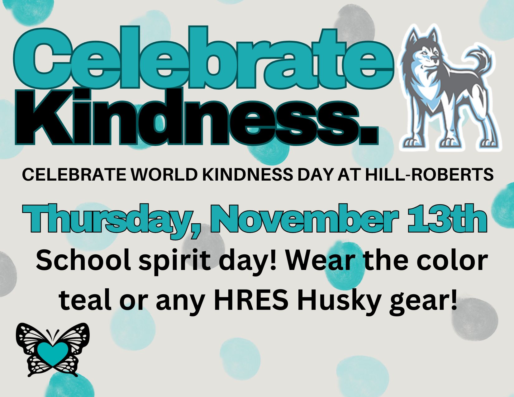Looking ahead, Thursday is World Kindness Day. We invite all students and staff to wear Teal or Husky gear as we celebrate the power of kindness together.