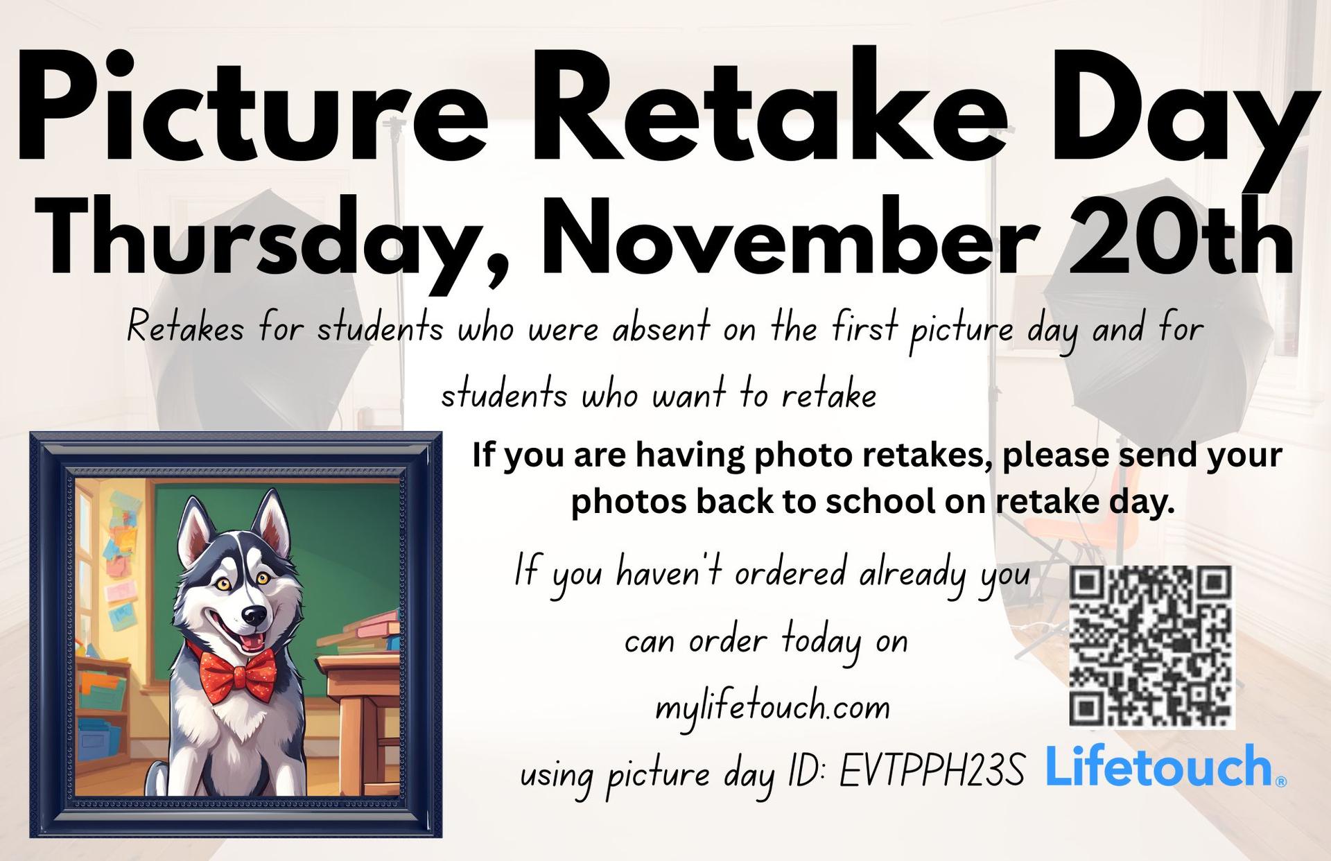 Picture retakes are in less than two weeks! Please let your student's teacher know if you would like a retake. |