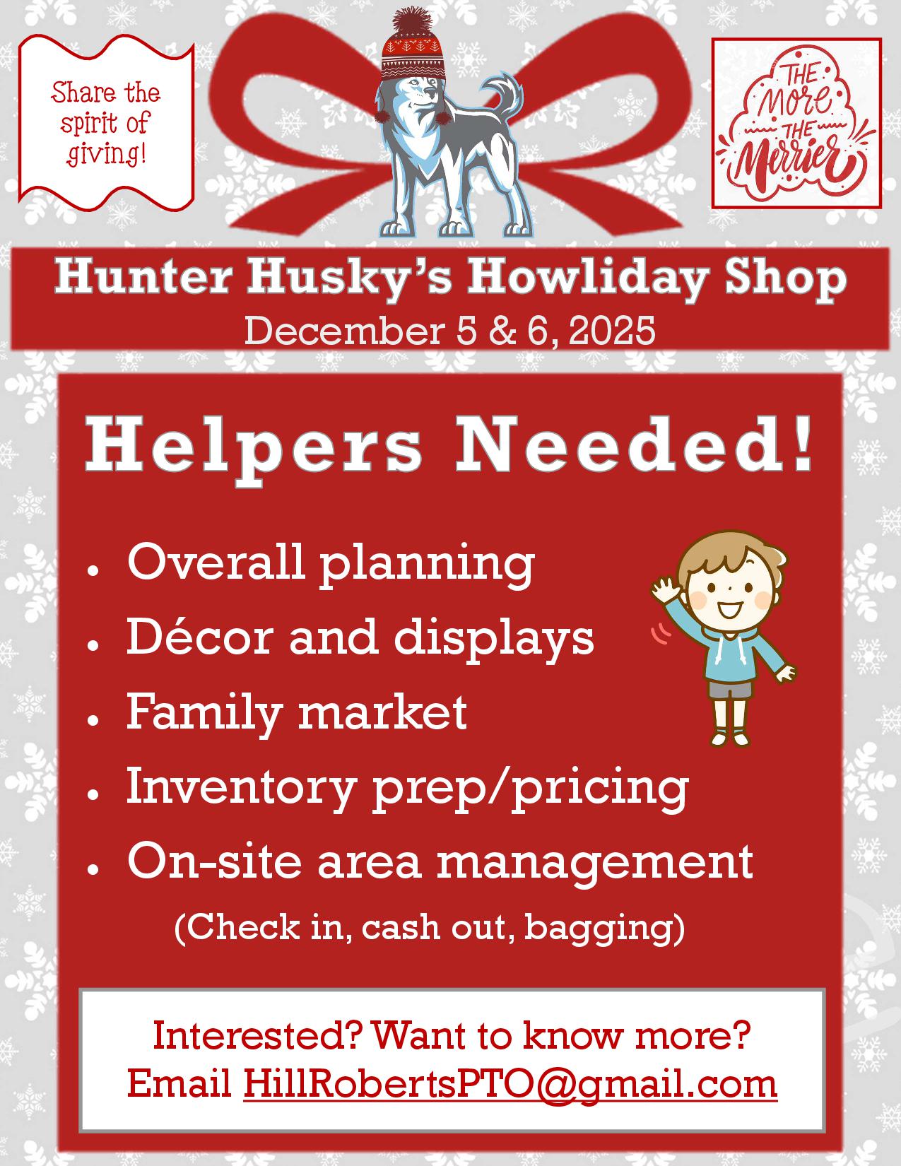 For questions about volunteering, fundraisers, or event questions, email hillrobertspto@gmail.com or visit https://www.facebook.com/share/1GGrujkdtj/?mibextid=wwXIfr |