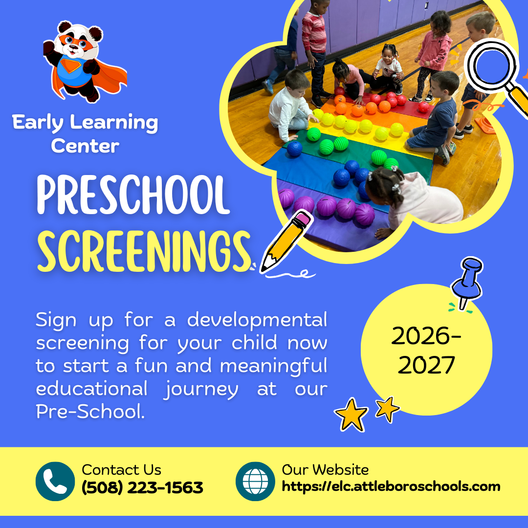 The Early Learning Center is beginning the lottery process for the upcoming school year! Eligibility Requirements: ✅ Must be 3 years old by September 1, 2026 ✅ Must live in Attleboro ✅ Must complete a developmental screening