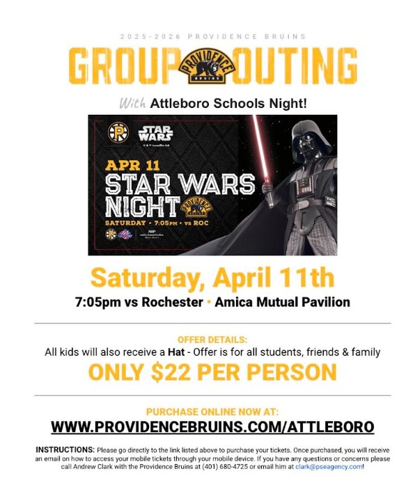 - PBruins Attleboro Elementary Schools Night- Saturday, April 11 at 7:05 pm