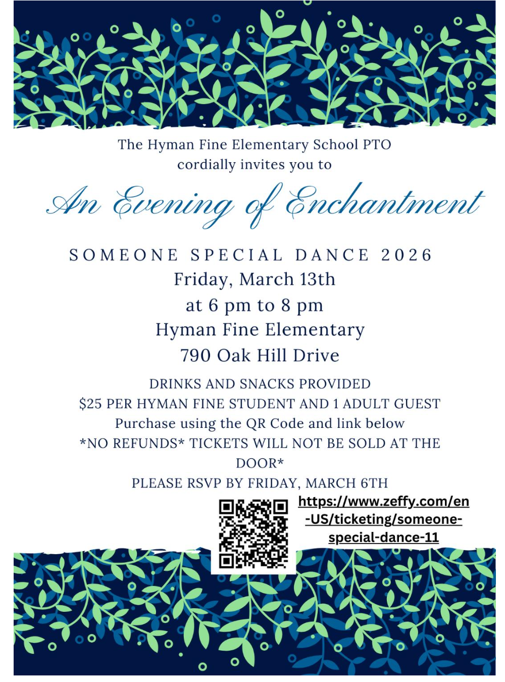 - Someone Special Dance- Friday, March 13 from 6:00-8:00 pm at Hyman Fine