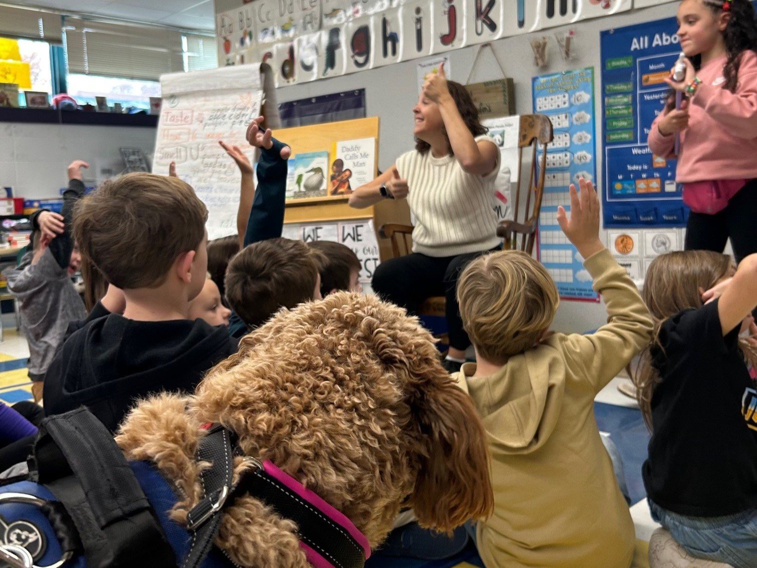 I had the best week visiting classrooms! In Mrs. Gordon’s class, I joined circle time and listened to their story of the day — I even sat so nicely during sharing time (and might have gotten a few extra pets!). In Ms. Remillard’s class, my new friend Hailey read me a story, and I loved every minute of it. Then in Ms. Young’s class, I got to join center time and explore all the fun activities with the students — so much fun!
